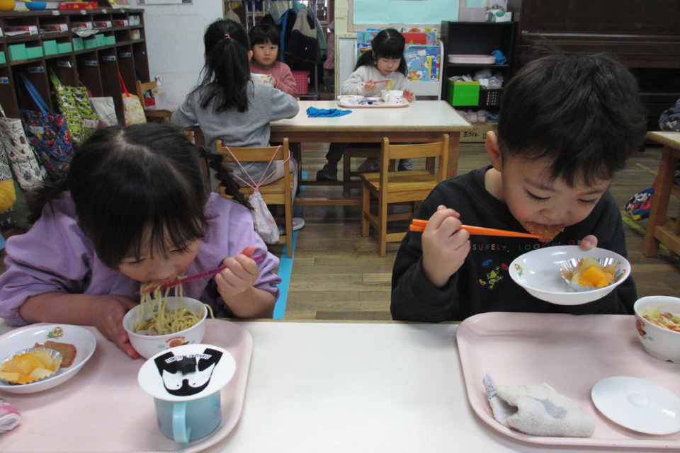 いただきます!!栄養士さんが作ってくれた愛情いっぱいの給食をみんなで食べます