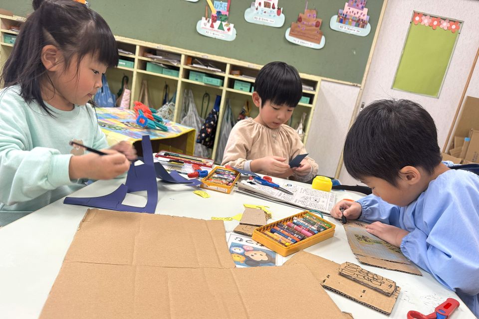 段ボールや画用紙を使っての工作に夢中のふじ組✂️「スマホ」や「switch」「ドローン」など作っていました🎮✨