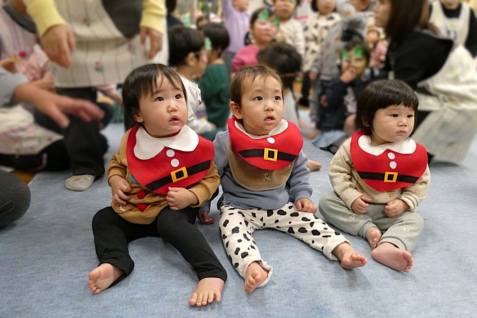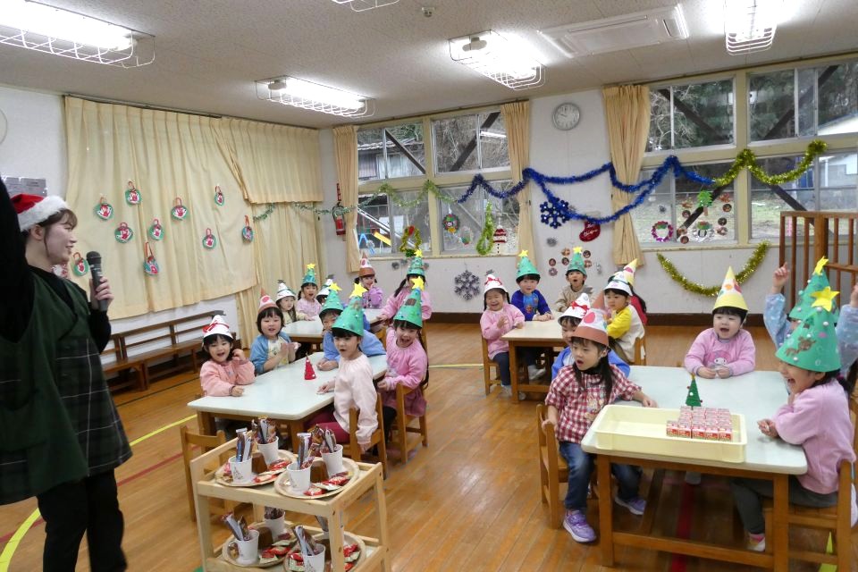 12月24日(水)にクリスマス会がありました。3歳以上児の子どもたちが、プレイルームやツリーの飾り付けを行い、クリスマスの日を心待ちにしながら準備を進めてくれました🎄💖クリスマス会当日は、おやつパーティーや12月生まれの誕生会、歌の発表など、楽しいことが盛り沢山❣️「サンタさん、来るかな?」と心配そうな子どもたちでしたが、みんなの声が届いたようで、サンタさんがプレゼントを持ってやって来てくれました🎅🏻🫎サンタさんの登場に子どもたちは大喜び‼️嬉しそうにプレゼントを受け取っていましたよ😊🎁子どもたちの喜ぶ顔をたくさん見ることができた楽しいクリスマス会となりました。