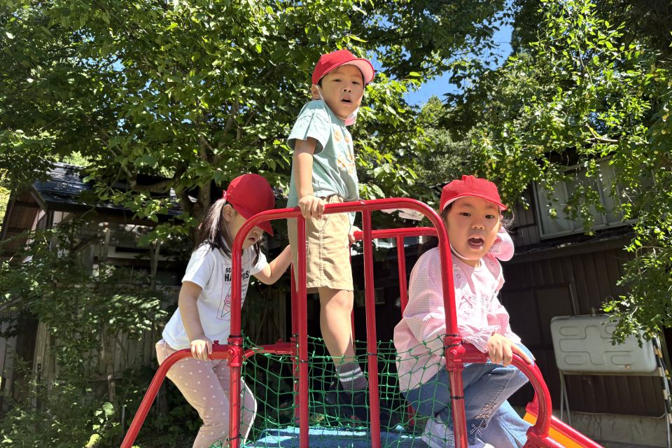 外でのびのびと遊びを楽しんでいます!高いところからやっほ~!👋🏻🌟