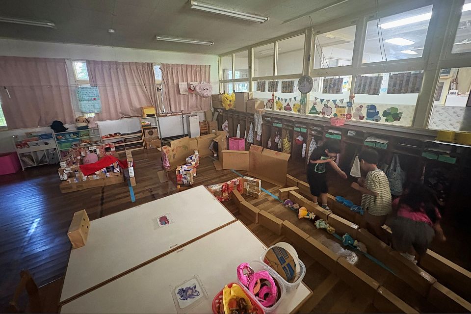 みんなでなにやらおばけやしきごっこをしているようです…工夫して人形や段ボールを使って楽しそうに作っていました👻