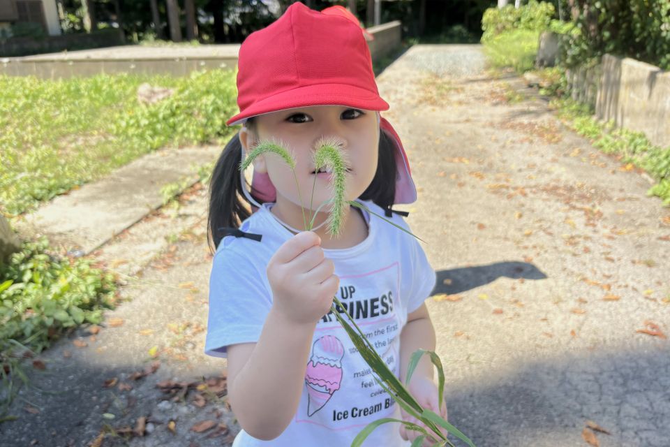 散歩をしていたら猫じゃらし発見!!植物に興味が出てきている子どもたちです☘️