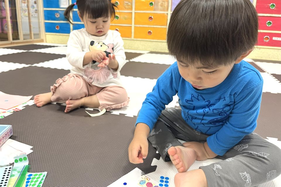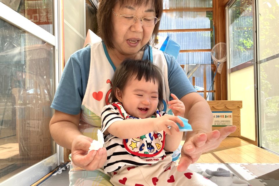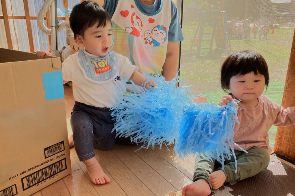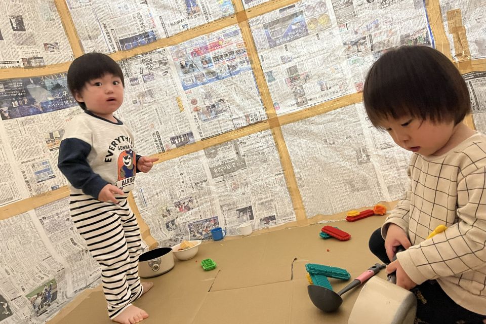 もも組さんに訪問して新聞紙のテントに入って遊びました⛺