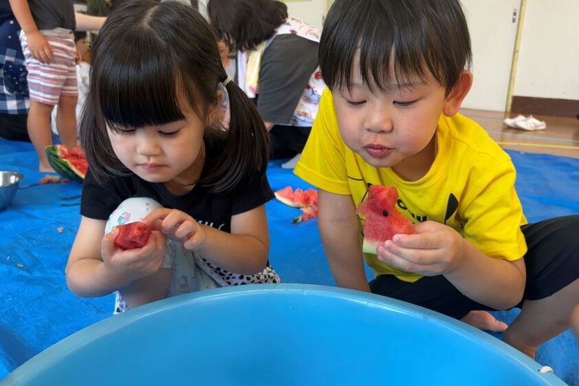 みんなで割ったスイカはいつもよりおいしかったね😋✨