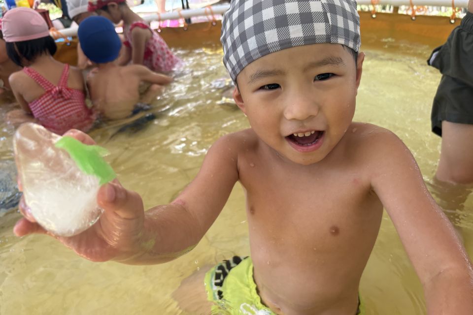 ふじ組さんとプールで氷遊びをしました!氷からなにか出てきたよ…!😮